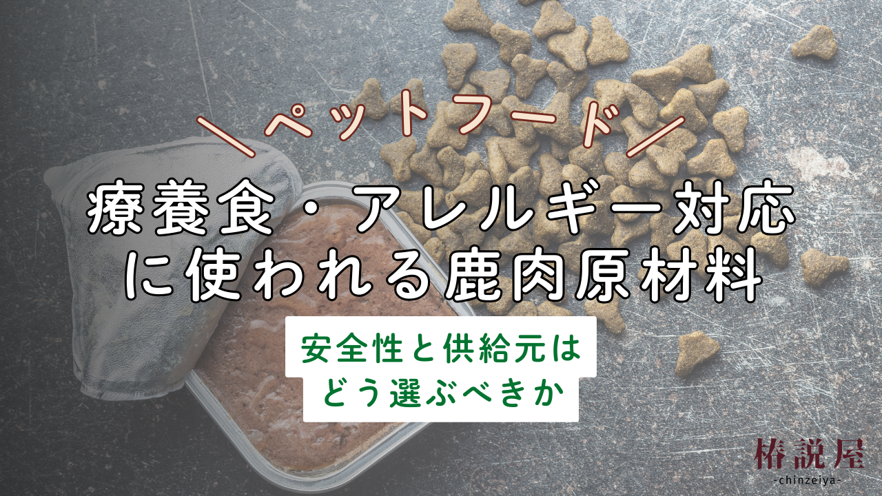 犬の療養食・食事療法・アレルギー対応に鹿肉を採用する動きが広がっています。 重要なのは「鹿肉であること」ではなく、 獣医師・動物病院が説明責任を果たせる原材料かどうかです。 本記事では、供給元選定の判断軸を工場・医療目線で整理します。